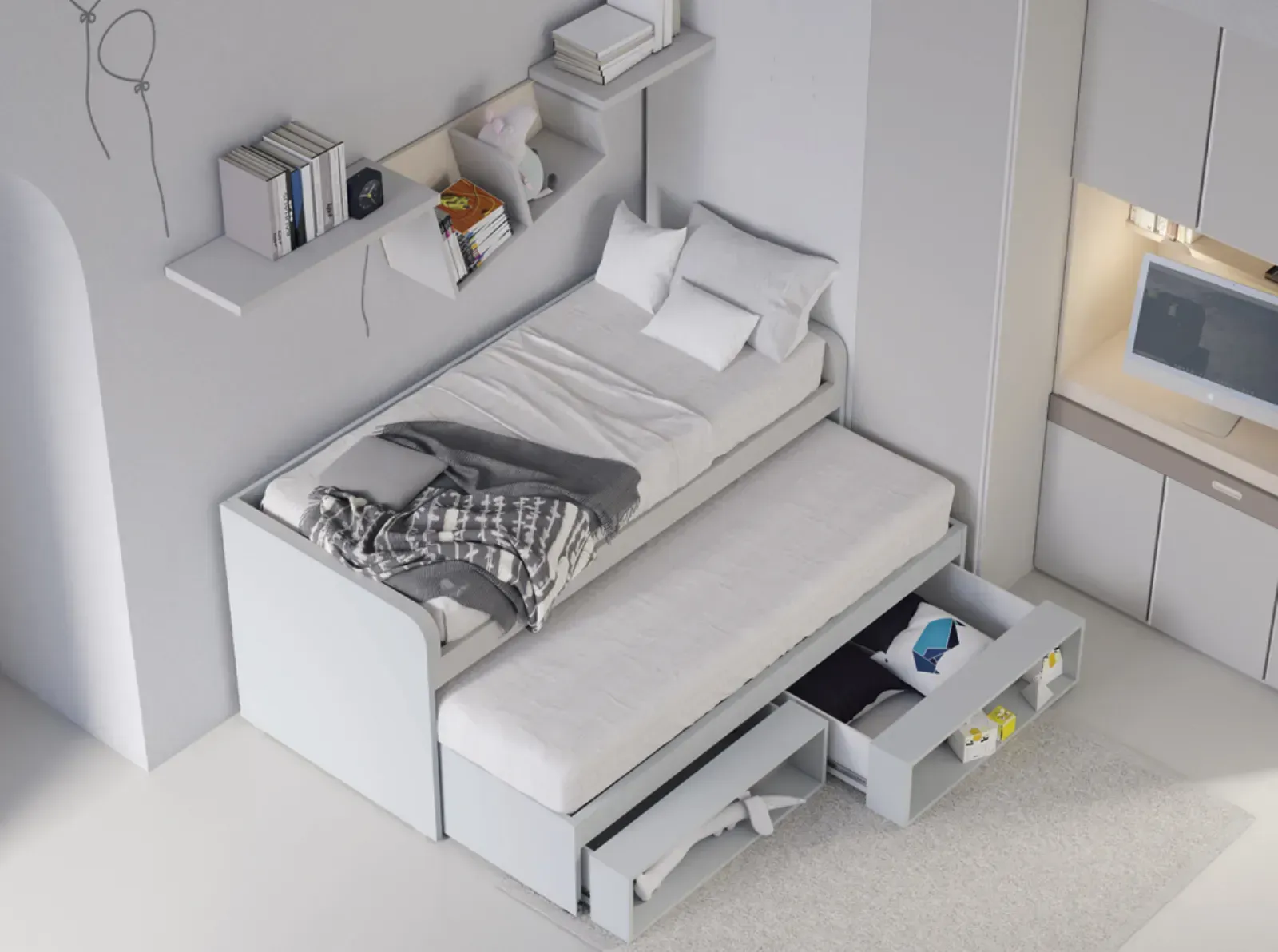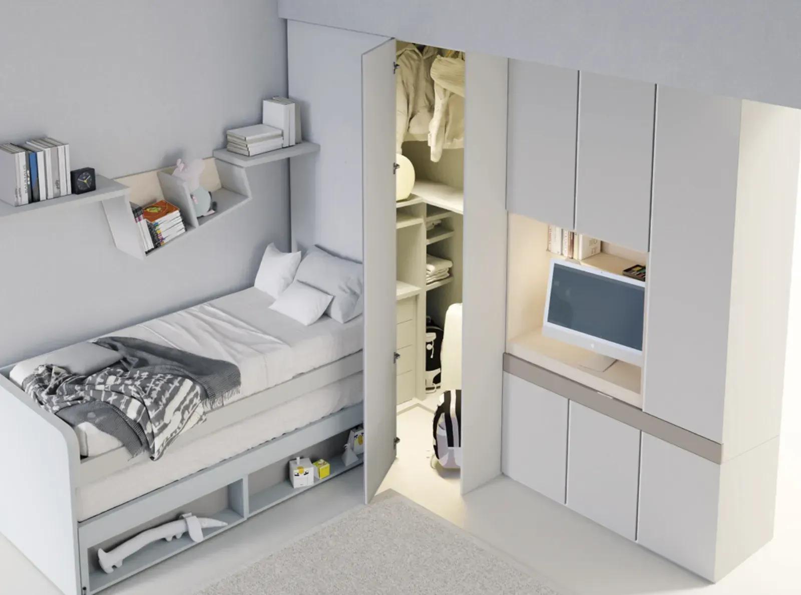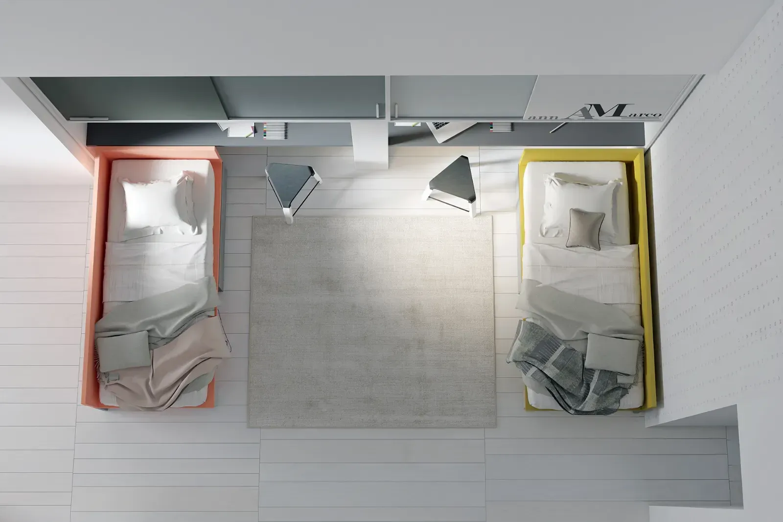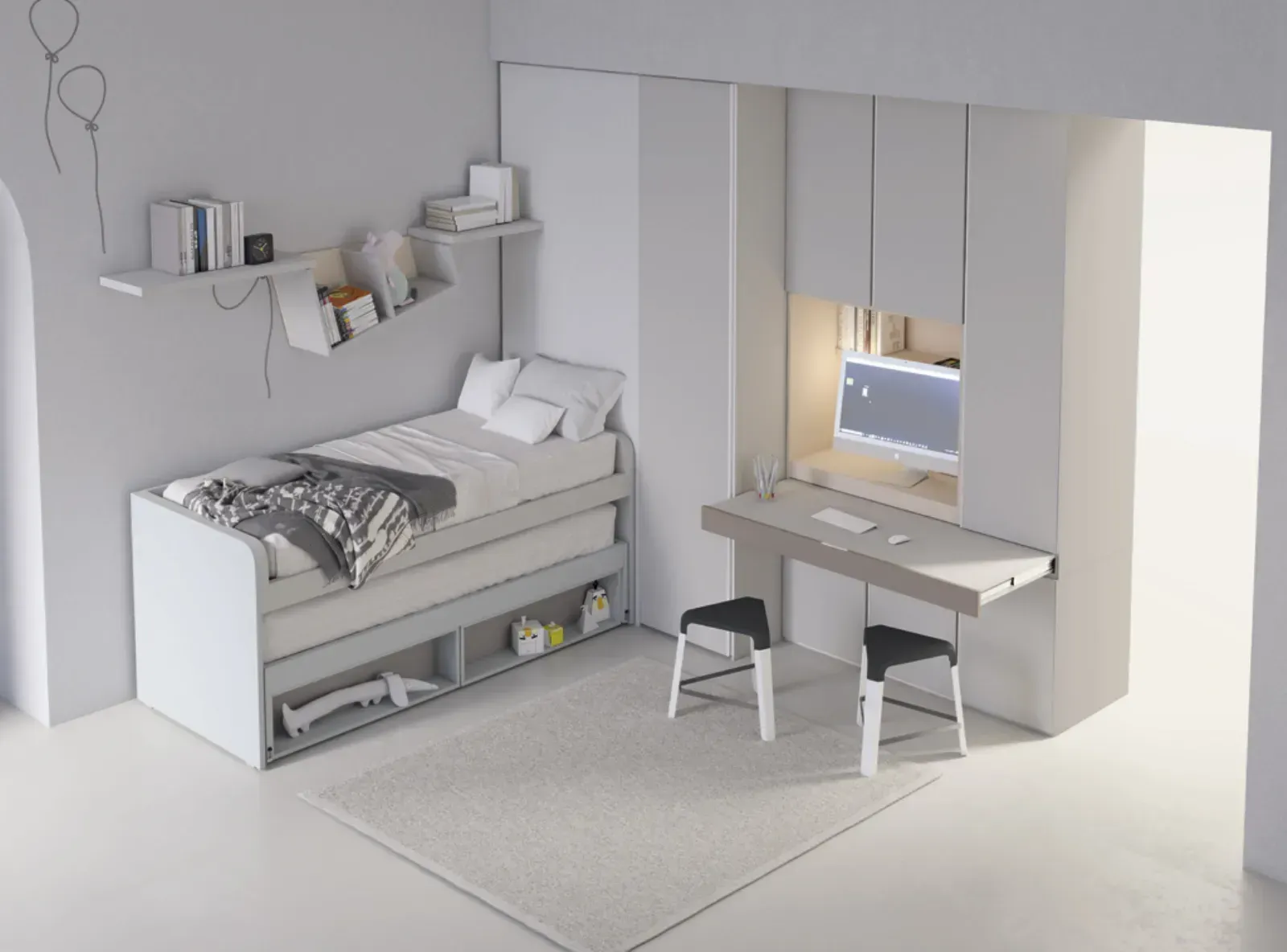 L'assistenza progettuale dei nostri designer ti aiuterà a creare la cameretta perfetta per i tuoi figli, sia che siano bambini o adolescenti. Con una vasta gamma di finiture e infinite configurazioni, puoi scegliere tra letti a castello, a soppalco, singoli o ad una piazza e mezzo, oltre a cabine armadio o armadi lineari. Ogni soluzione è pensata per ottimizzare lo spazio e garantire funzionalità, senza rinunciare al design.
